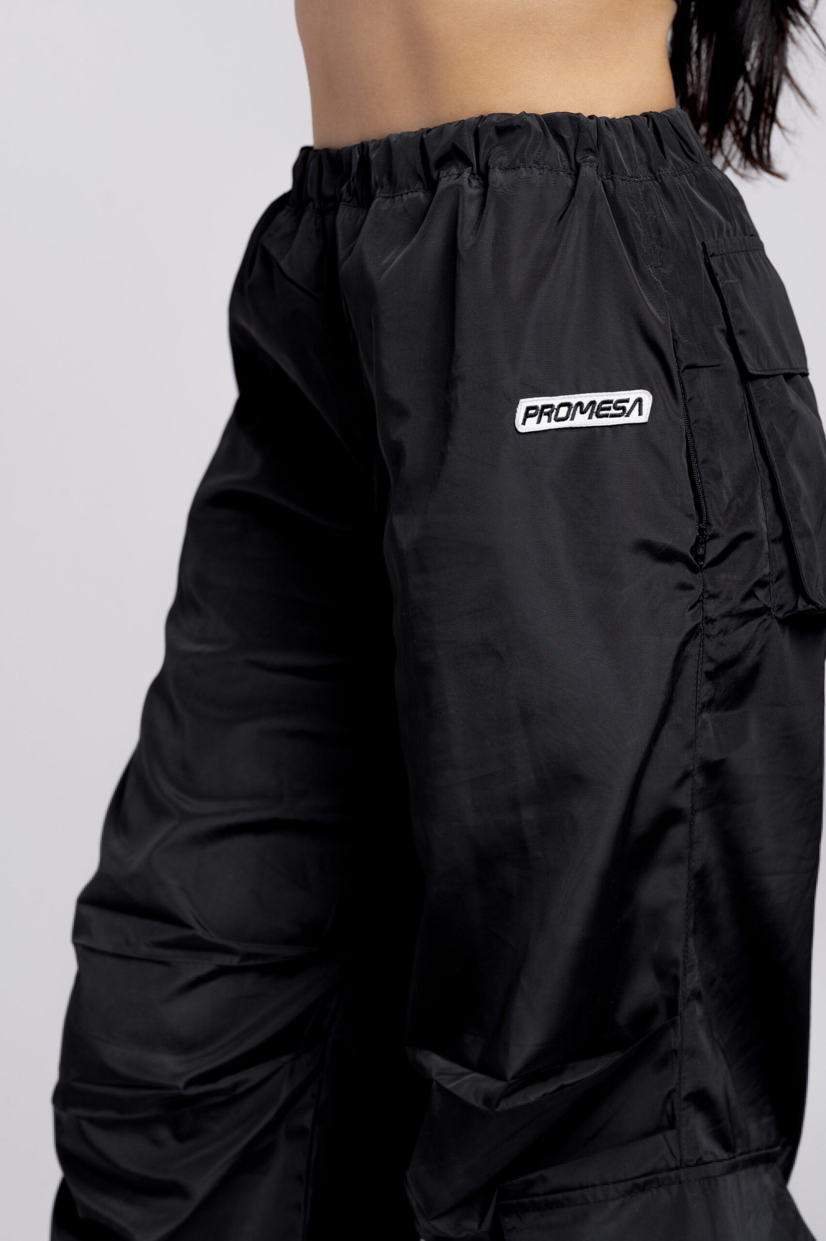 Pantaloni cargo sport din material impermeabil, cu crac reglabil pentru două tipuri de siluetă.