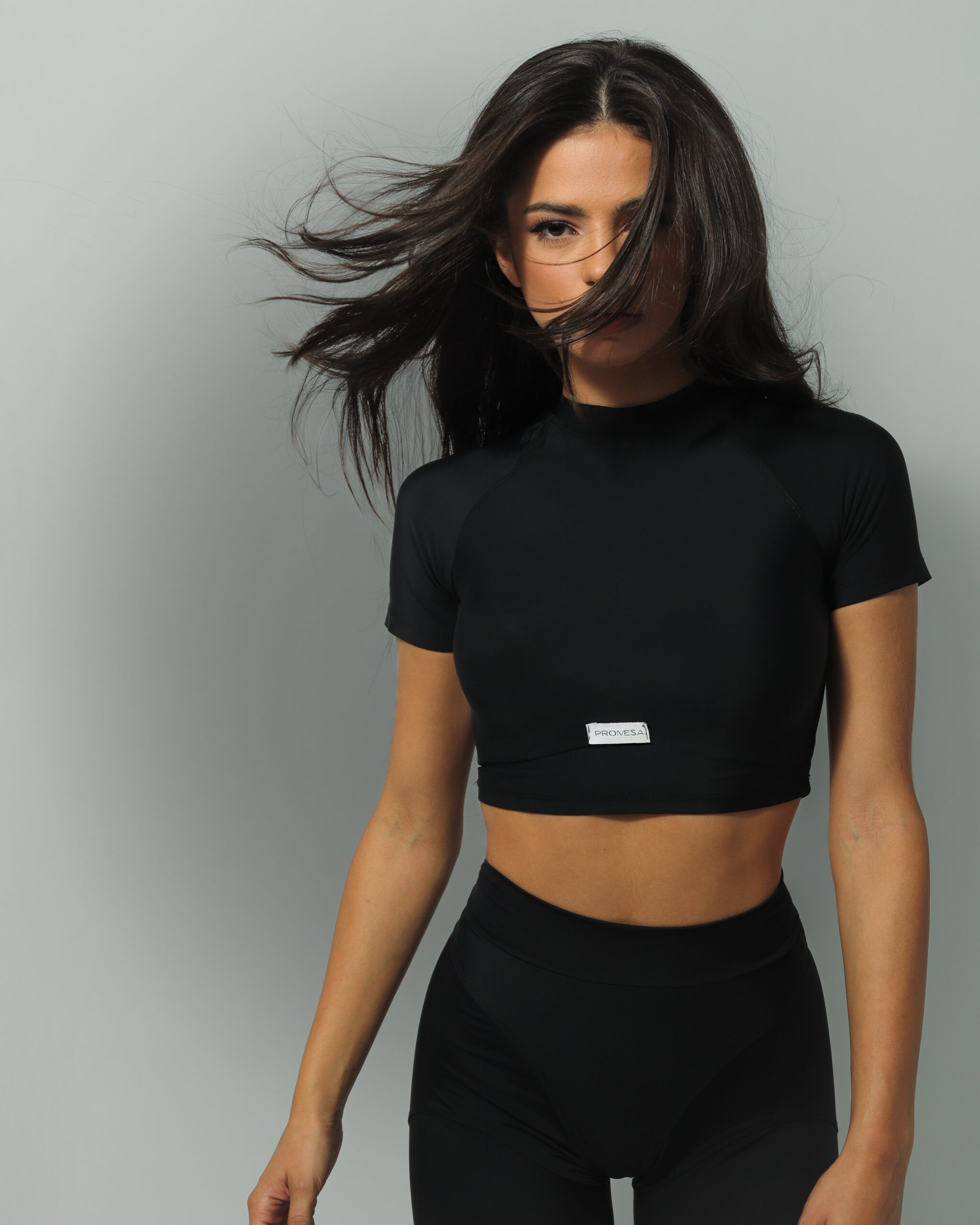 • Set cu colanți cu talie înaltă și tricou scurt.
