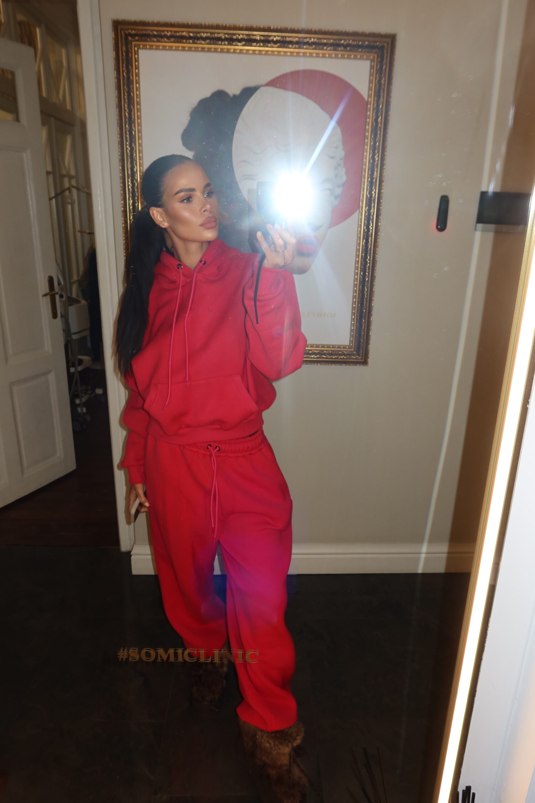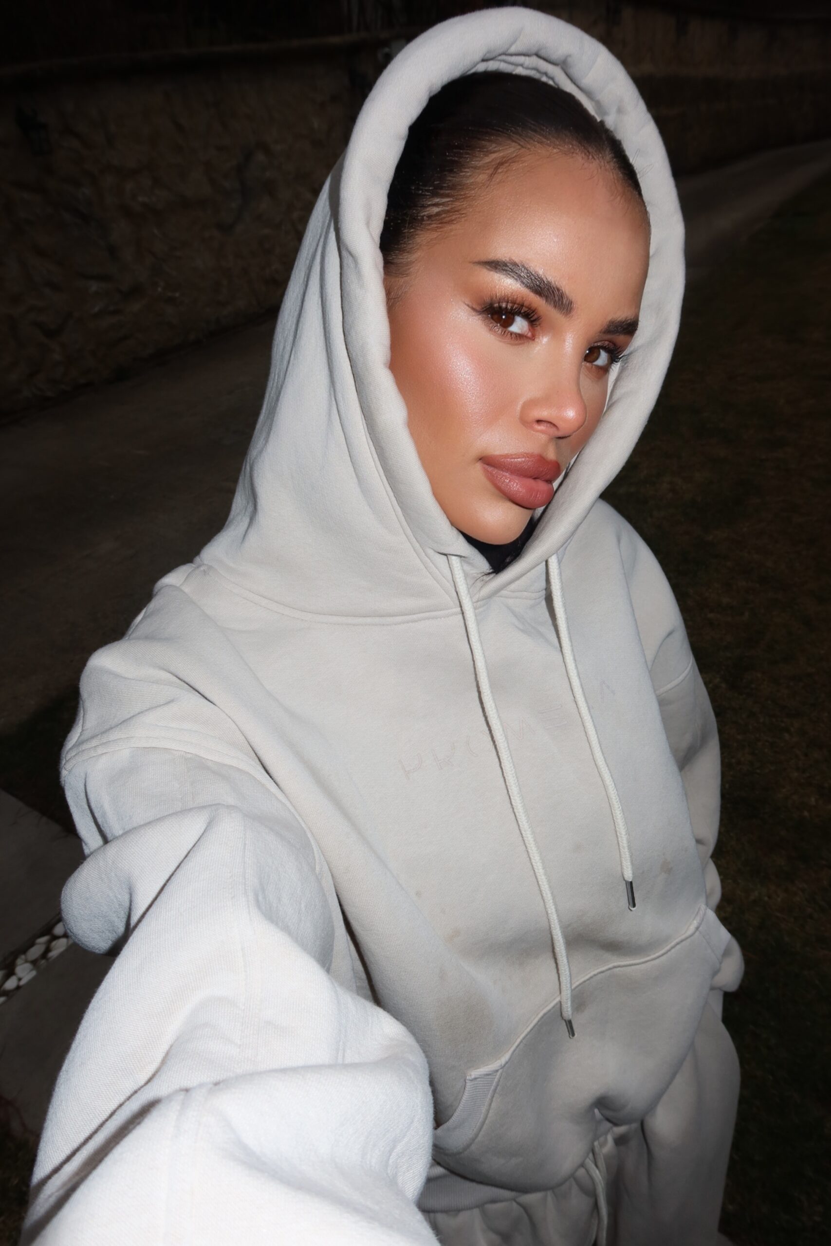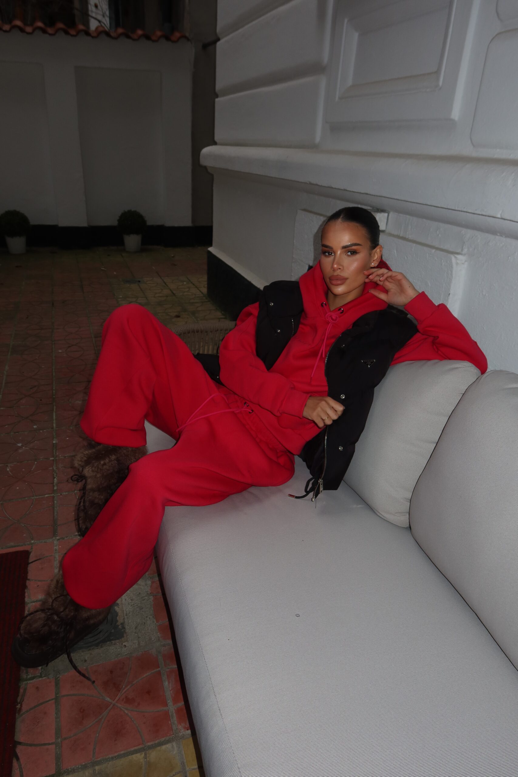 Set din două piese cu croială oversize, elastic și glugă. 100% bumbac.
