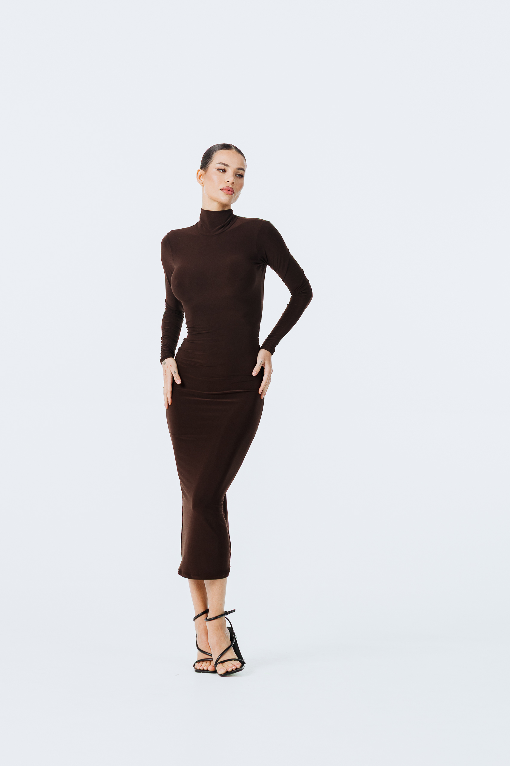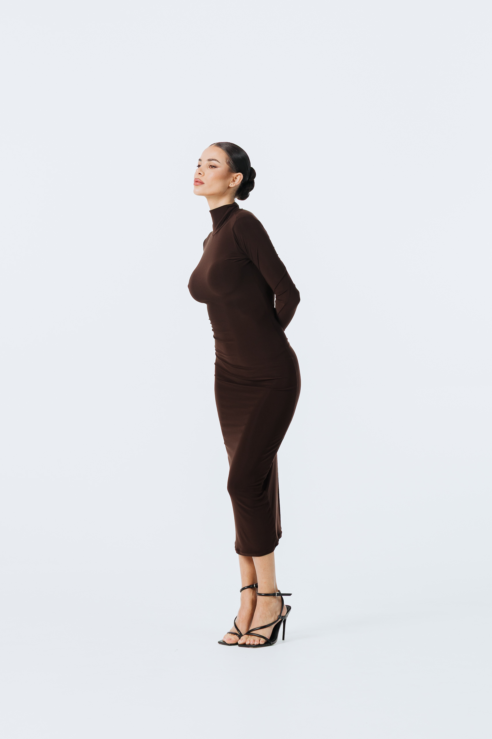 Siluetă romantică și feminină, cu fronseuri de-a lungul întregii rochii, care nu sunt doar estetice, ci și funcționale, deoarece maschează micile imperfecțiuni. Țesătura este moale și foarte elastică, iar detaliul de pe mânecă face ca modelul Renata să se distingă de tot ce am creat până acum.
